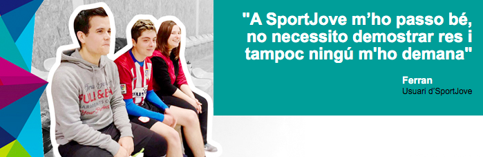 Ferran: “SportJove et permet fer exercici i dur una vida més saludable. L’exigència d’un club de futbol o qualsevol altre esport en els entrenaments i la competitivitat, fins i tot entre companys, és molt gran. En un club també vas a passar-t’ho bé però sobretot a demostrar el que saps tècnicament. A SportJove no cal demostrar que saps jugar bé a futbol, bàsquet o pàdel, tampoc ningú t’ho demana. Molts dels que participem a SportJove hem patit problemes a casa, a l’escola o amb amics inclús, i en el meu cas al ser molt tancat em costava d’explicar i m’ho quedava per mi. I és clar aquests problemes emocionals per algun lloc han de sortir. És per això que recomanaria SportJove: si t’agrada l’esport és una eina que t’ajuda a desconnectar si tens qualsevol problema. És una hora per distreure’t, passar-t’ho bé i de pas també conèixer gent nova”.