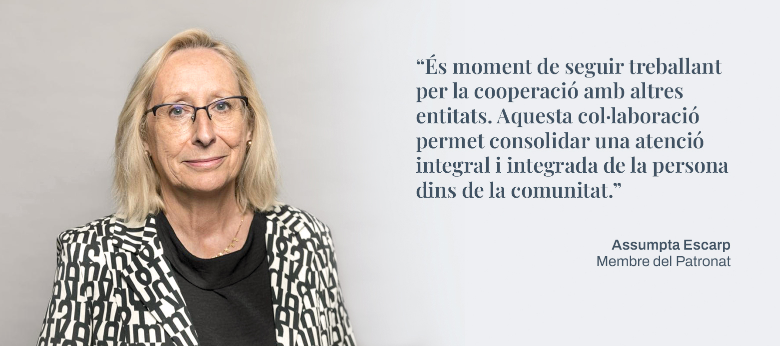 Amb motiu de la seva recent desvinculació del Patronat, compartim aquesta conversa amb Ester Sarquella, psicopedagoga de formació i experta en gestió executiva i d’atenció