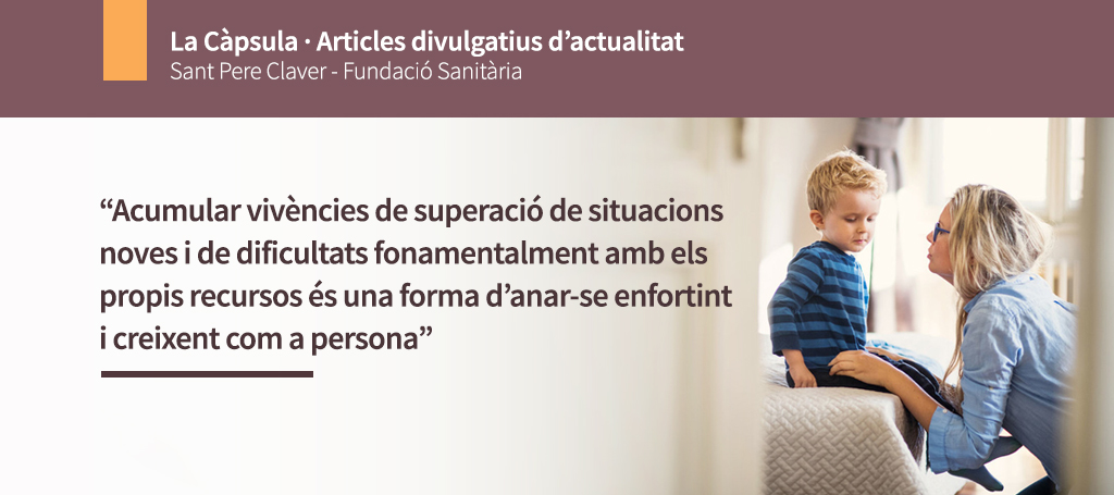 Acumular vivències de superació de situacions noves, de dificultats, i haver-ho fet fonamentalment amb els propis recursos és una forma d’anar-se enfortint i creixent com a persona. Però sempre pensant que cal dotar els menors d’unes capacitats psicològiques suficients per l’enfrontament dels obstacles i de les experiències frustrants que, a mode d’Equips de Protecció Individual (com els que haurien de haver estat proveïts els nostres sanitaris per exercir la seva tasca amb seguretat), els permetrà assolir aquest propòsit, no abandonar-lo i generar-los més patiment. Perquè en la majoria de les persones no hi ha prou amb la seva constitució genètica i és determinant la participació de l’entorn per desenvolupar aquestes proteccions.