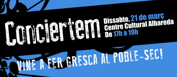 El dissabte 21 de març de 17h a 19h et convidem al concert Conciertem dels ‘Bullangas’ i ‘Els música de la Colònia’ que organitza la Residència i el Centre de Dia Tres Pins al Centre Cultural Albareda (c/Albareda 22). Vine a moure’t a ritme de rock, ska i rumba, és…